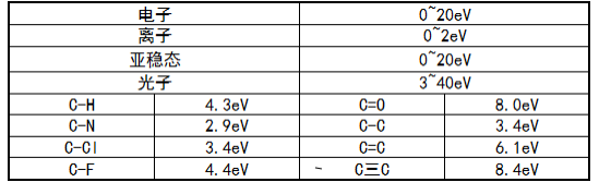 等离子体中的粒子将自身的能量传递给固体表面,诱发表面的原子或分子生成新的化学键,或者使原来的化学键断裂;典型的键能只有几个电子伏特(eV)。
