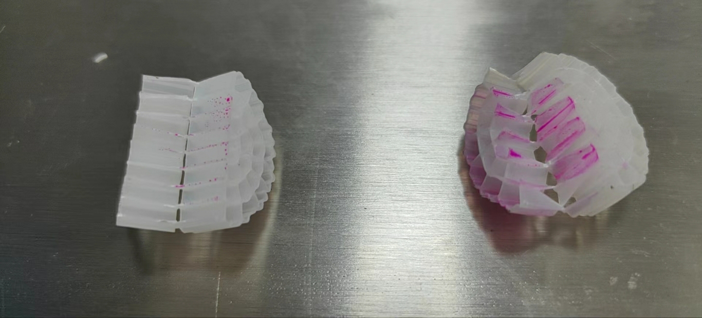 粗糙化表面和极性官能团为微生物(如硝化菌、反硝化菌)提供了更稳定的定植环境,微生物附着量可提升 20%-60%,且形成的生物膜更致密、不易脱落;同时,亲水分散性确保填料在反应器内均匀分布,避免 “死区”(无微生物区域),提高污水净化效率(如 COD 去除率、氨氮降解率可提升 10%-25%)。