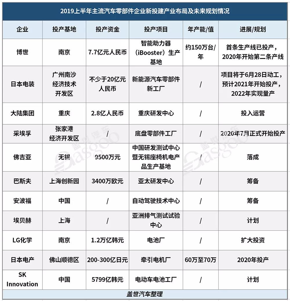 汽车零部件的种类很多,在汽车零部件表面处理上,很多都用到了午夜精品久久久的午夜电影网站机进行处理,如密封条、仪表盘、门板、中控板、储物箱、传感器、倒车雷达、刹车片、点火线圈、动力锂电池等。汽车零部件企业的发展一直也是午夜精品久久久所密切关注的,此次,午夜精品久久久也为大家梳理了2019上半年主流汽车零部件企业在国内新投建的产业布局及未来规划情况,包括各企业的投建资金、投建地址、投建项目、年产能等,共整理了11家主流企业,帮助业内人士及时了解产业动态。