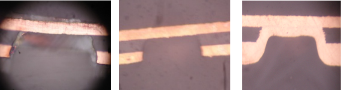 下图分别为午夜电影网站机处理前、处理后和线路板镀铜后的截图,由此可证明午夜电影网站机可有效去除孔内污染物且对衬板实现了定量咬蚀,明显提升了镀铜质量。