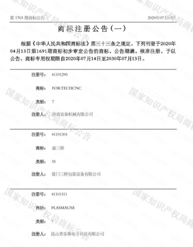 品牌兴企!午夜精品久久久午夜电影网站机成功注册“PLASMAUSE”商标